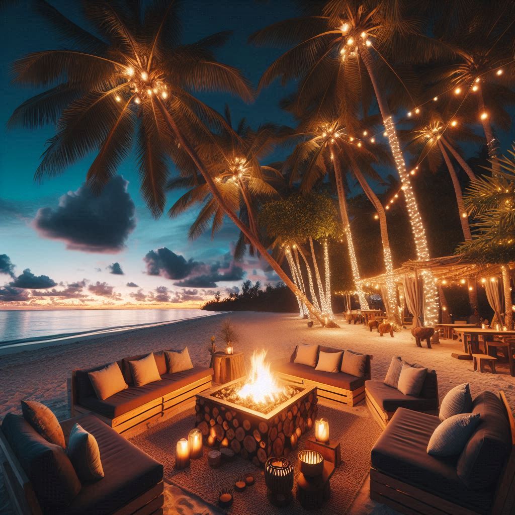 Pristine white beaches that stretch far into the eyes invite the perfect setting for a nighttime bonfire at the beach. You imagine your guests having a blast around a big bonfire, the waves crashing in the background. Feed lounge areas, fairy lights between palm trees, or even a live acoustic band. It is the perfect blend of relaxation and luxury.